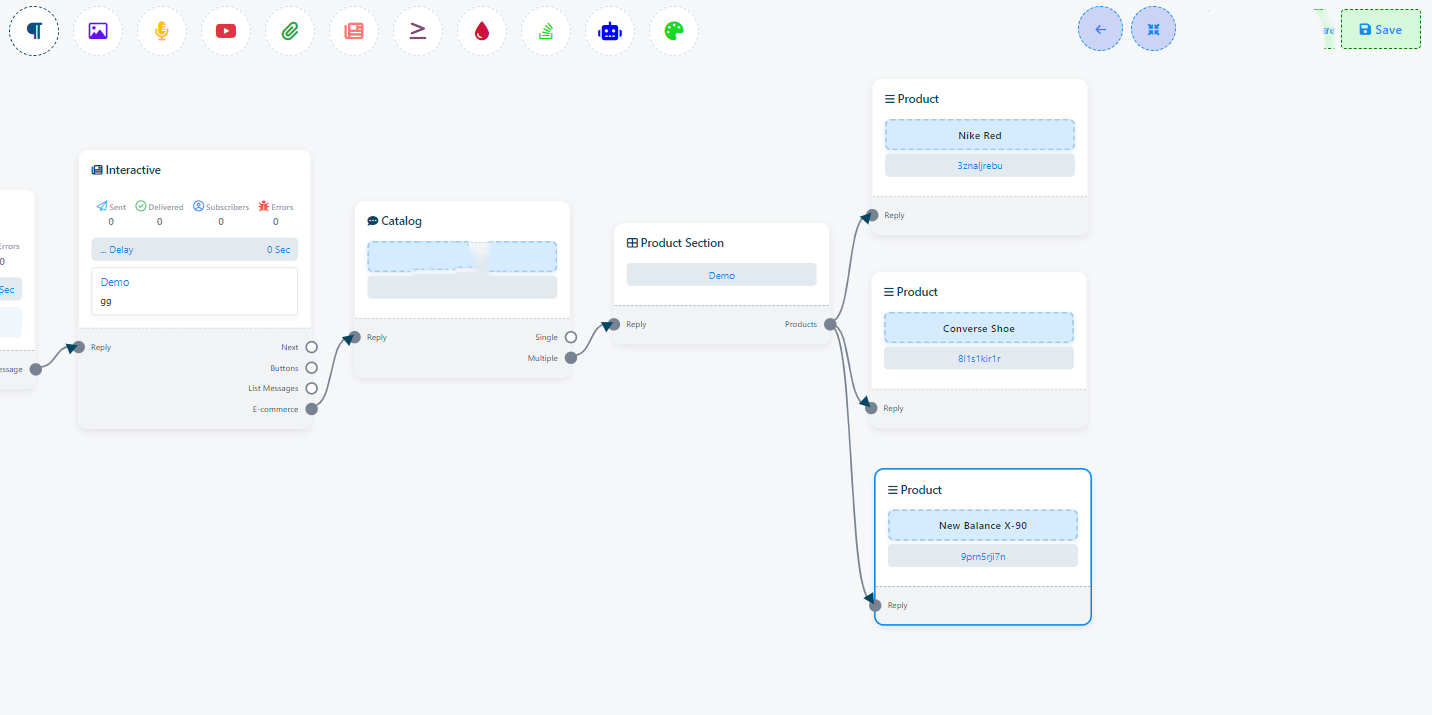 - Once you have configured your ecommerce store within the flow builder, make sure to save your changes. Afterward, you can publish your chatbot with the ecommerce feature.