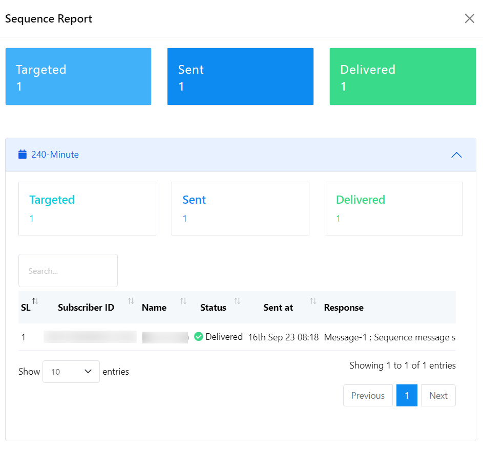 Access Reports: To view reports of the Sequence Message Campaigns, click on the hourly or daily reports options under the `Actions` section of the sequence list.